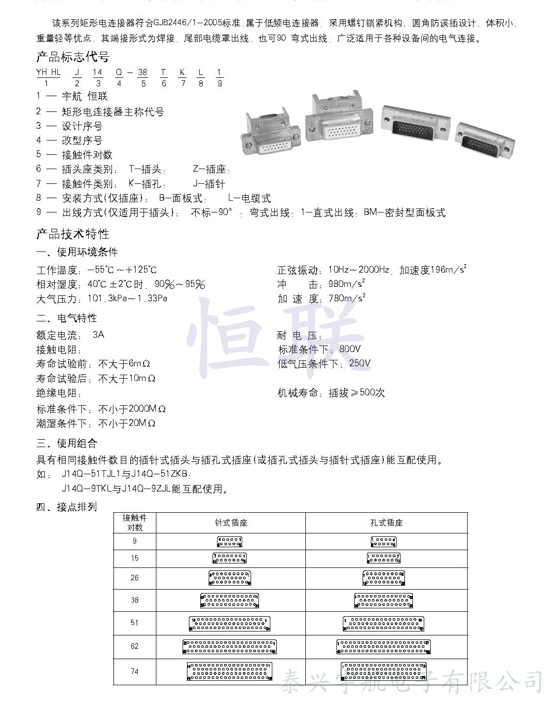 產(chǎn)品型號:J14Q系列矩形電連接器